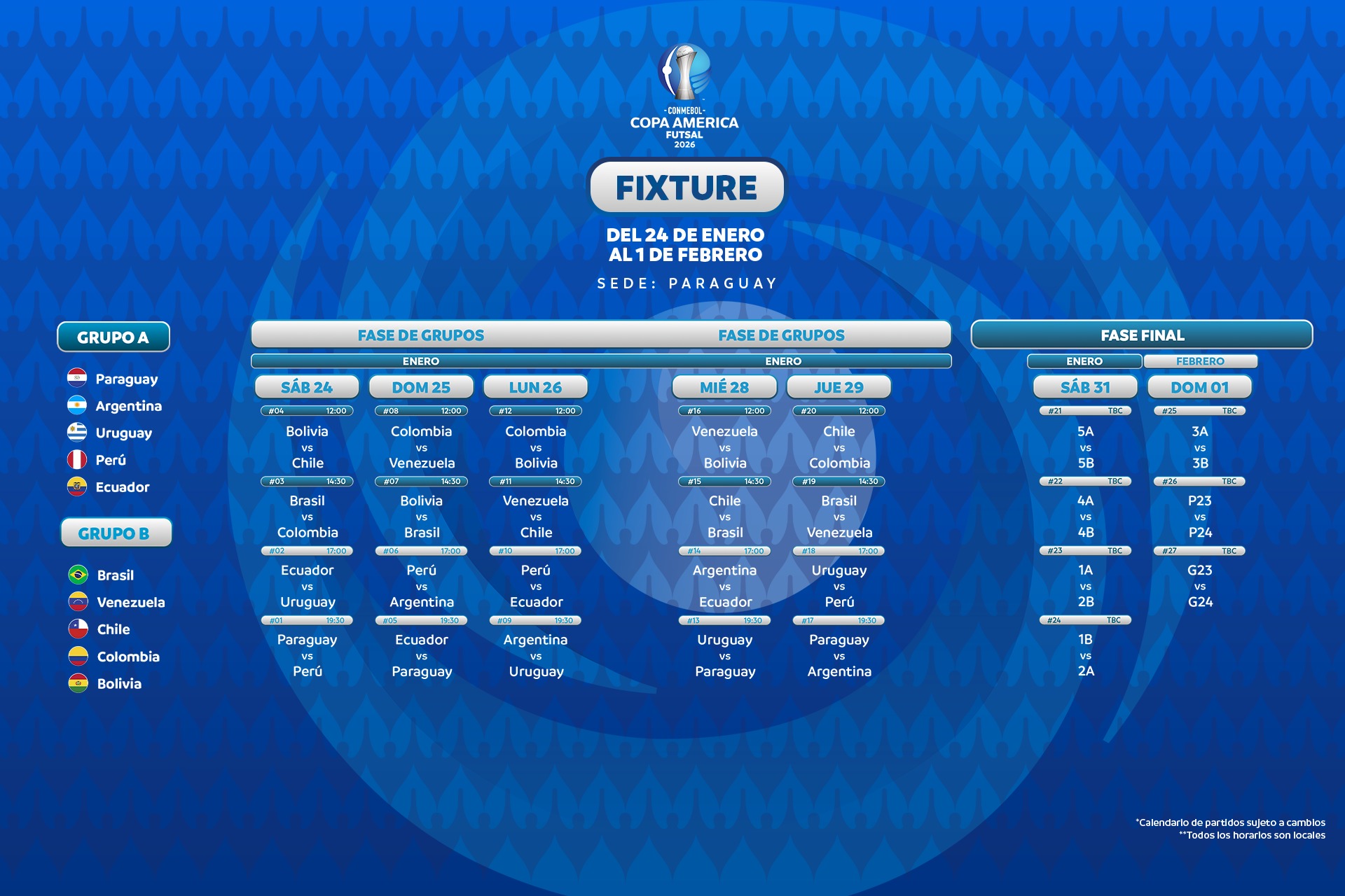 El día de mañana 24 de enero, inicia la Copa América de Futsal 2026 en donde Brasil defenderá el título de campeones.
