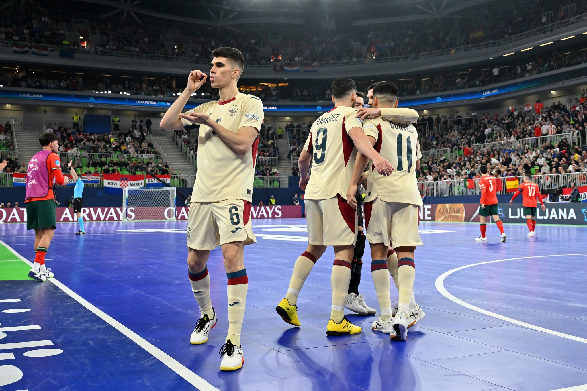 En lugar de crear el gol de la victoria, Antonio lo marcó él mismo a poco menos de cinco minutos del final, completando el primer triplete de una final de la Eurocopa de Fútbol Sala en 30 años al culminar una excelente jugada tras un pase de Cecilio. Mario Rivillos estrelló una volea en el larguero y, mientras Portugal apretaba, Adolfo marcó el quinto en los últimos segundos