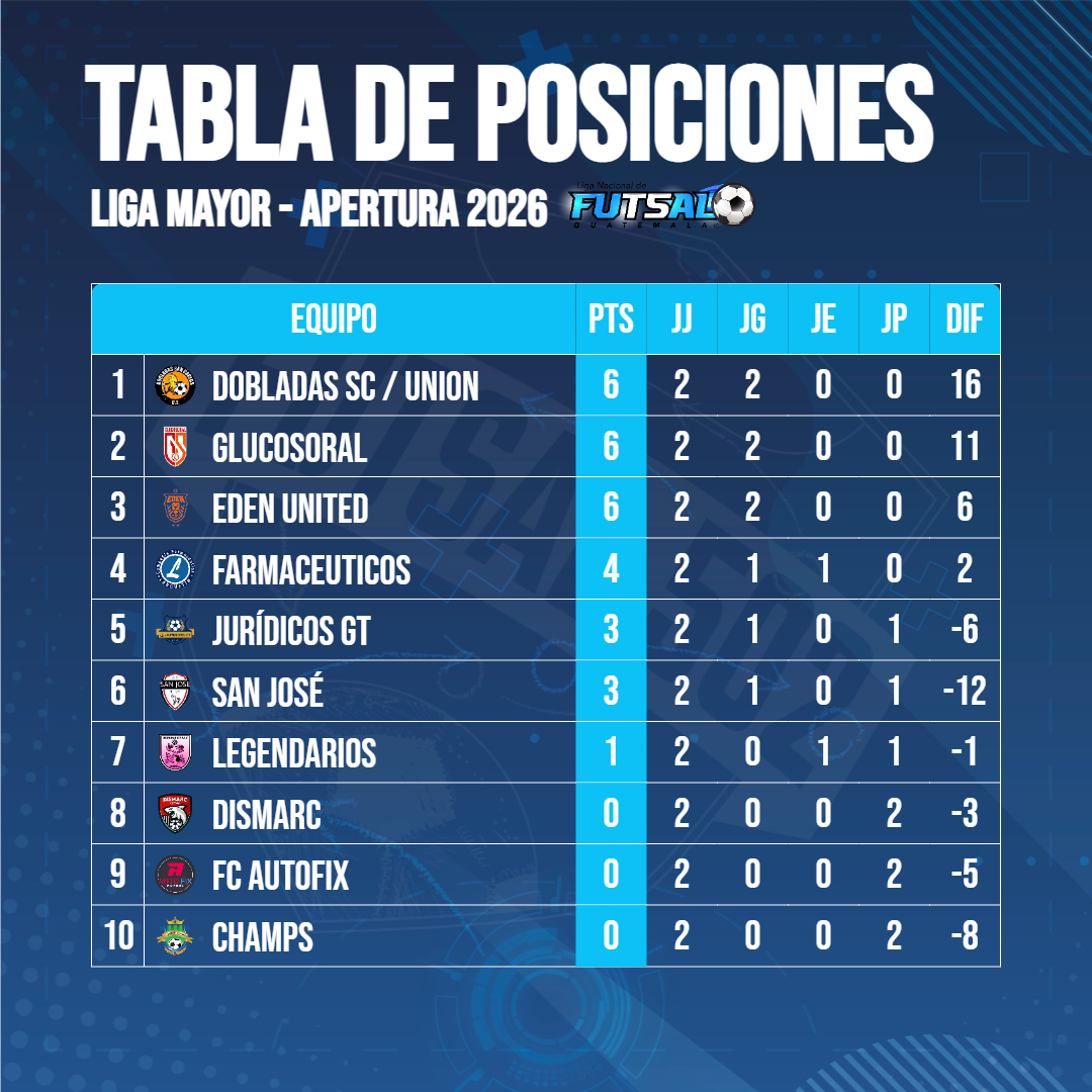 Se jugó la jornada #2 de la Liga Mayor de Futsal Masculina con varios resultados interesantes que nos indican que será un torneo muy disputado tanto en la parte alta como en la parte baja de la tabla.