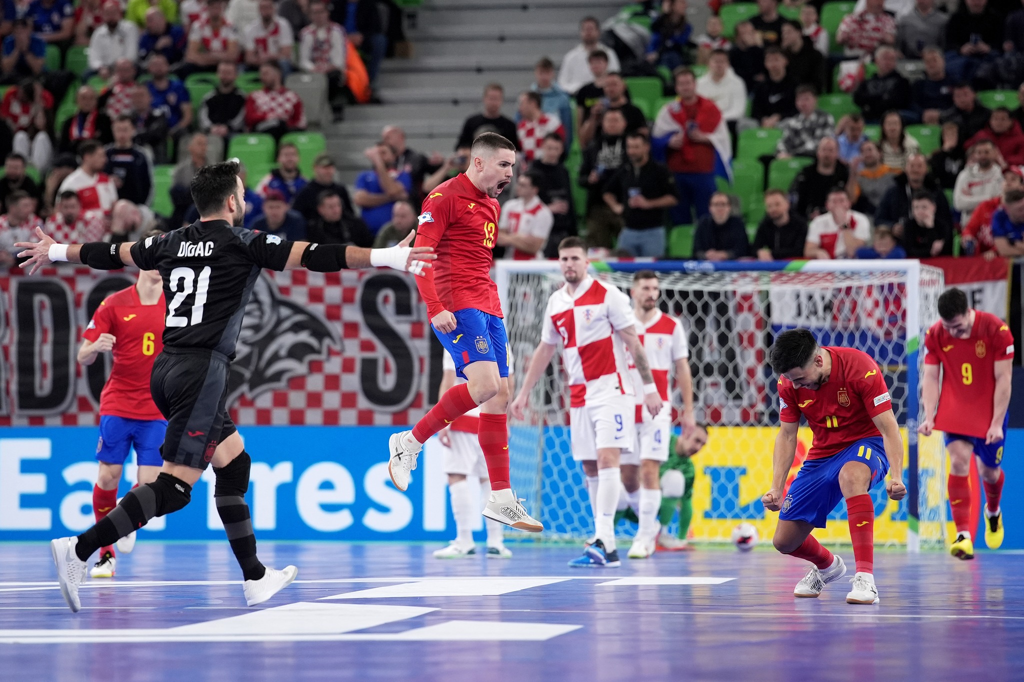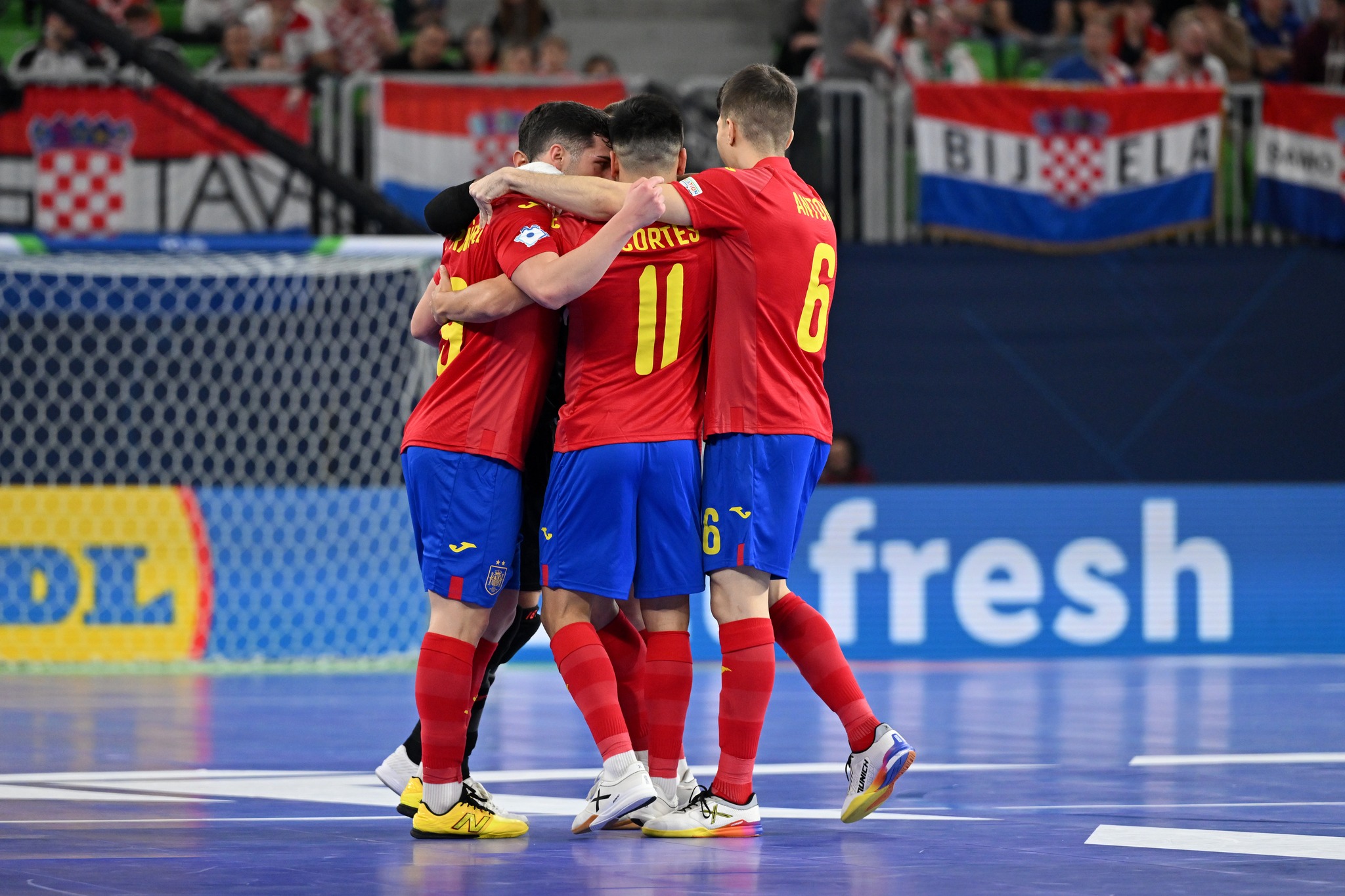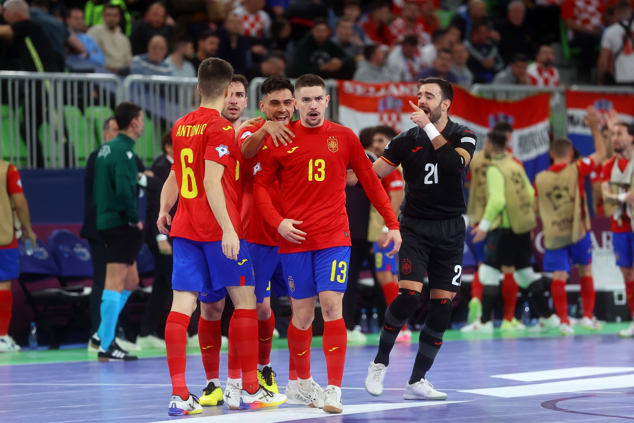 Dos grandes semifinales, la primera donde España le ganó a Croacia por 2 a 1. Una Croacia que jugó bastante replegada y tuvo pocas chances. A España le costó encontrar los espacios pero llegaron los goles. El primero Pablo Ramirez vencería a Piplica con una gran definició con la zurda. A falta de 1:18 para irse al descanso, España doblaría su ventaja por medio de Mellado, que hizo una gran sobreposición sobre Francisco Cortés y con un disparo lejando vencía al portero croata. Para ponerle emoción a los minutos finales, Croacia inició a jugar con portero-atacador y con una gran circulación rápida del balón, Krisitian Čekol buscó el segundo palo y el balón daría en la humanidad de Mario Rivillos para una anotación en contra. 2 a 1 y final para España.